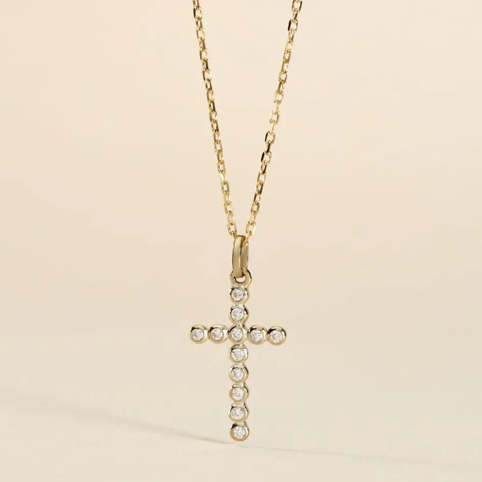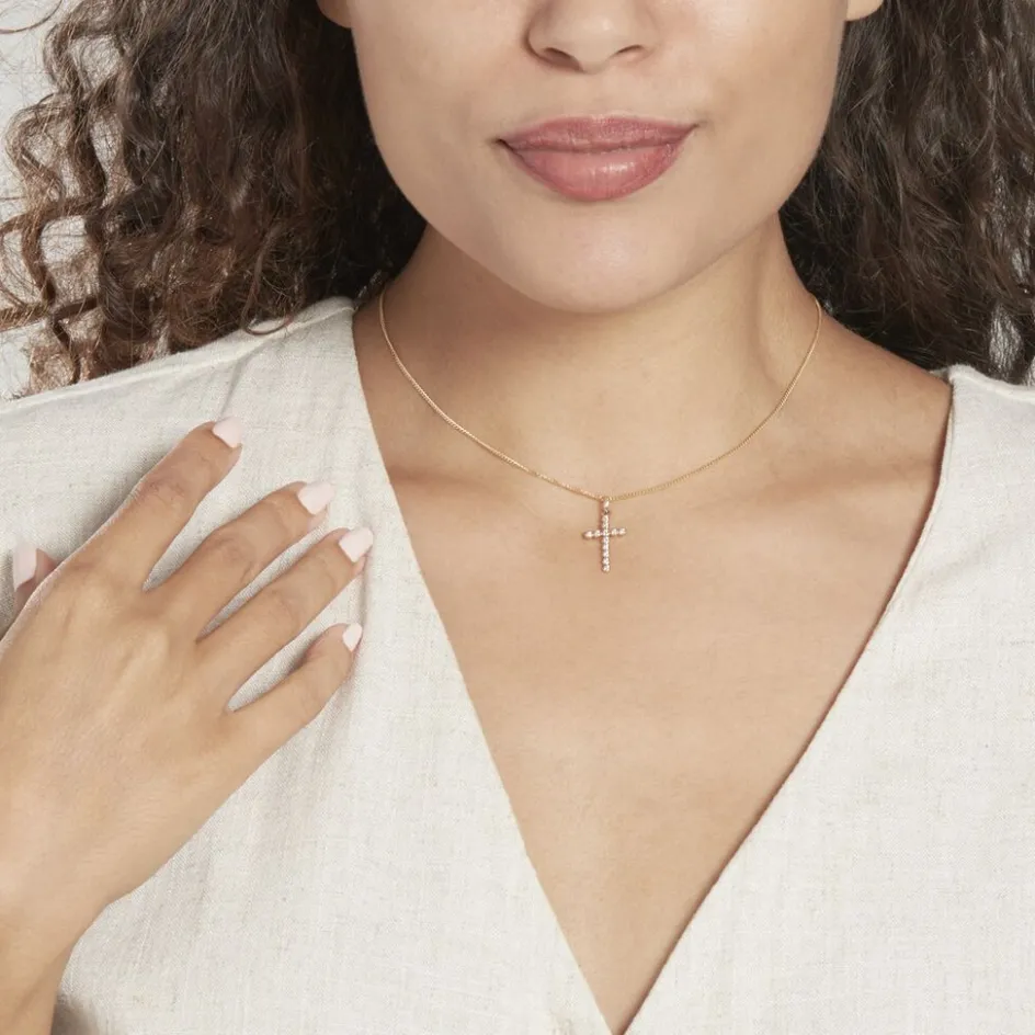 Pendentif Or Jaune 375/1000 Motif Croix Oxydes De Zirconium Pavage