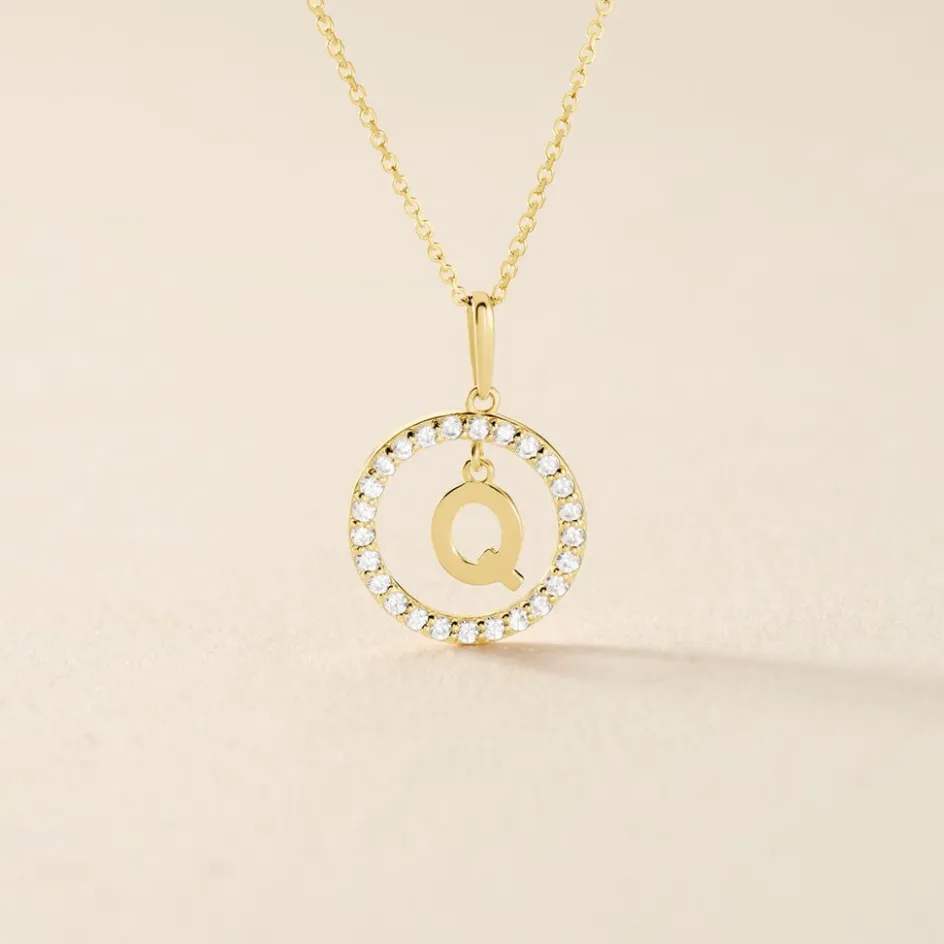 Pendentif Lettre Q Or Jaune 375/1000 Entourage Oxyde De Zirconium Blanc