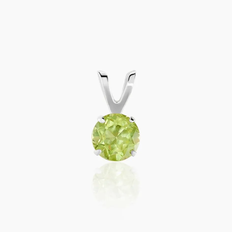 Pendentif Or Blanc 375/1000 Cercle Péridot Vert 0.16 Cts Serti 4 Griffes 5mm
