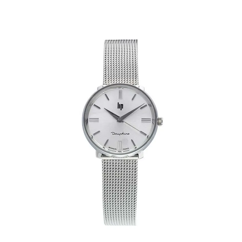 Montre Lip Dauphine Acier Argente Ronde Quartz 29mm Fond Argente Bracelet Acier Argente Maille Milanaise 671471