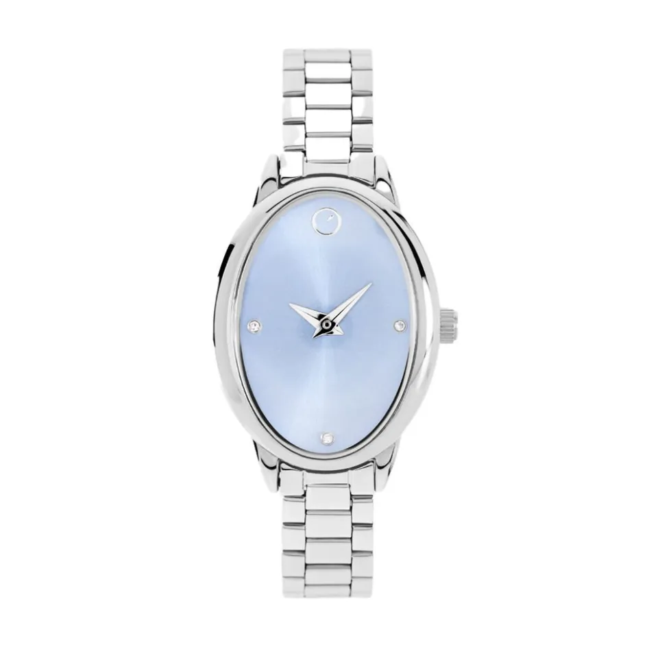 Montre O Watch Chic Alliage Argente Ovale Quartz 25mm Fond Bleu Bracelet Acier Argente Ow.4322sa/02m