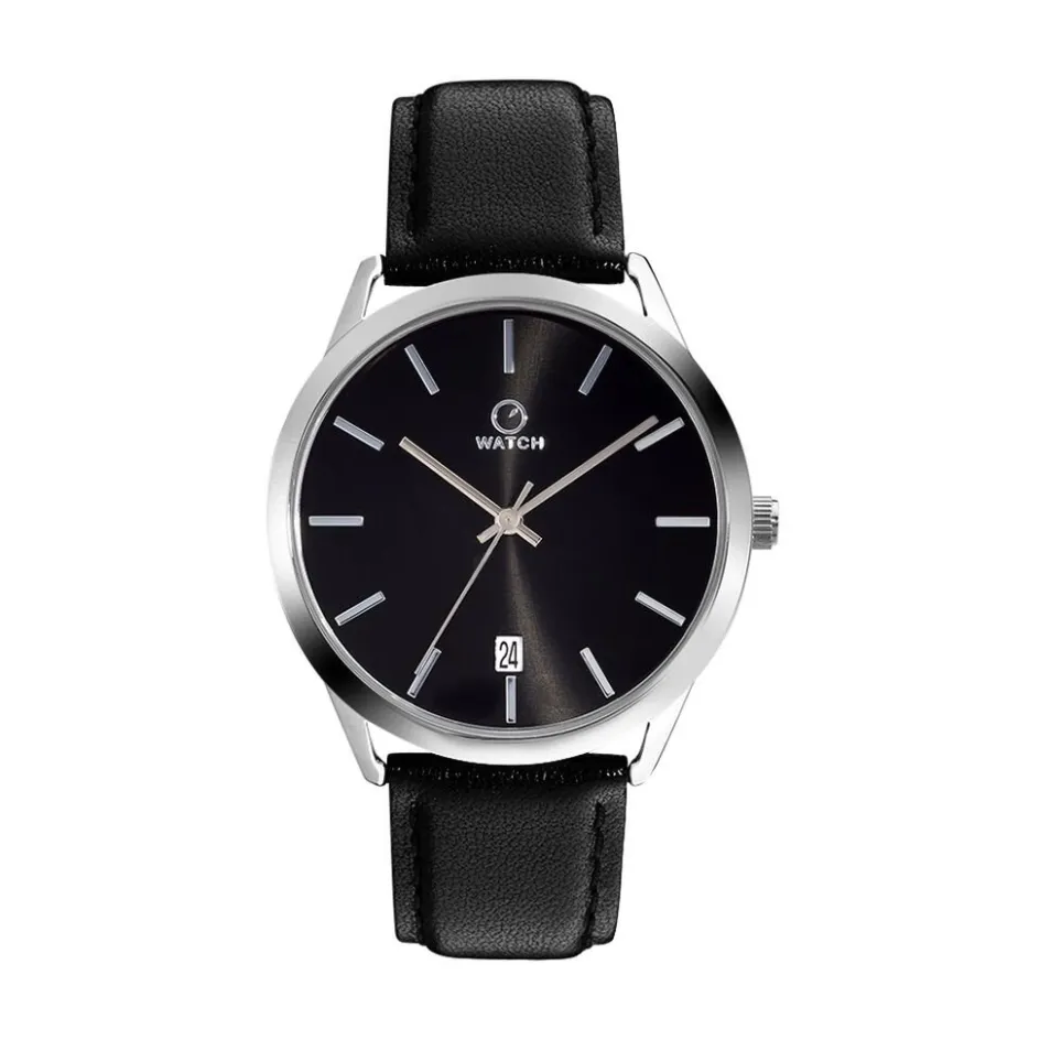 Montre O Watch Chill Alliage Argenté Ronde Quartz 41mm Fond Noir Bracelet Synthétique Noir P100960-h