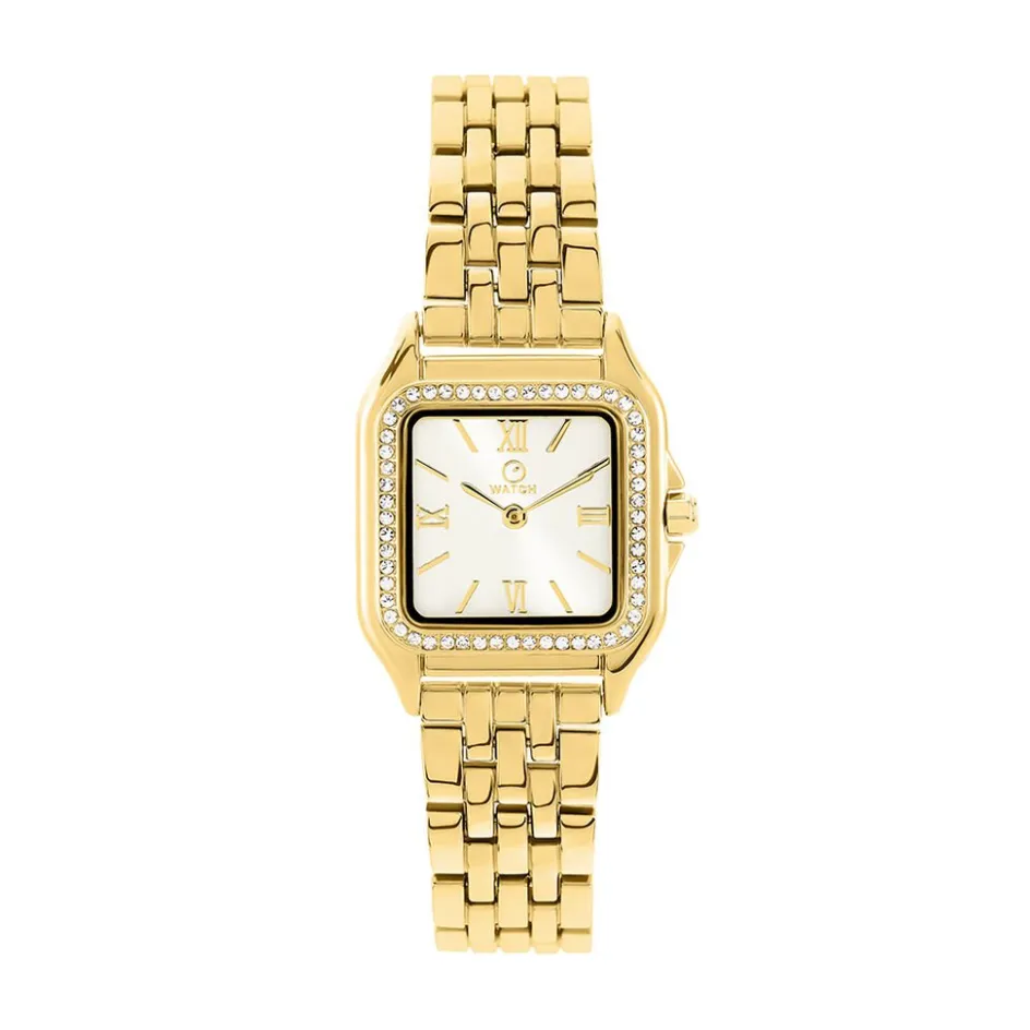 Montre O Watch Iconic Alliage Doré Quartz Carré 27.5mm Lunette Strass Fond Argenté Bracelet Alliage Doré Wbd374-002