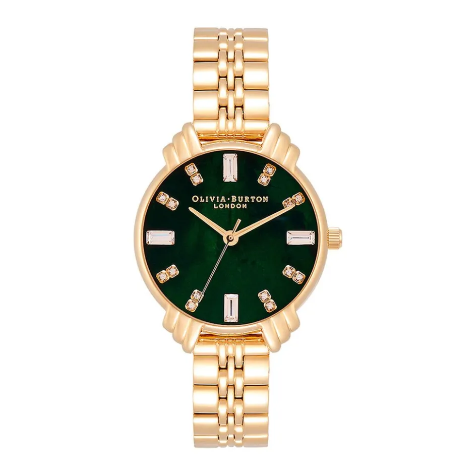 Montre Olivia Burton Art Deco Acier Doré Ronde Quartz 30mm Fond Vert Bracelet Acier Doré Ob16dc02