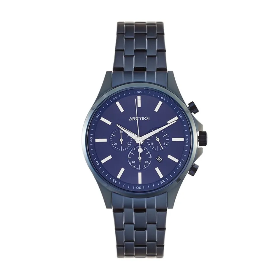 Montre Arctik Altitude Acier Bleu Ronde Quartz Chronographe 46mm Fond Bleu Bracelet Acier Bleu P100991-a