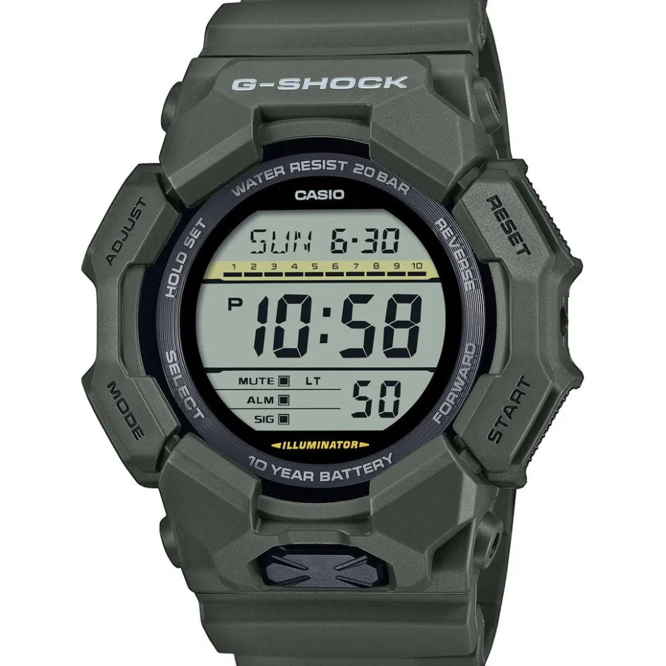 Montre Casio G-shock Résine Vert Ronde Quartz 51.9mm Fond Gris Lunette Plastique Vert Bracelet Résine Vert Gd-010-3er