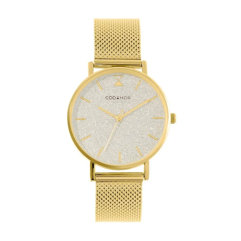 Montre Codhor Cindy Alliage Doré Ronde Quartz 34mm Fond Argenté Pailleté Bracelet Milanais Acier Doré Wba0025-028