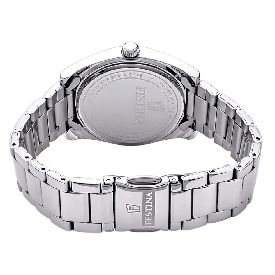 Montre Festina Boyfriend Acier Blanc Ronde Quartz 37mm Fond Vert Bracelet Acier Blanc F20622/c