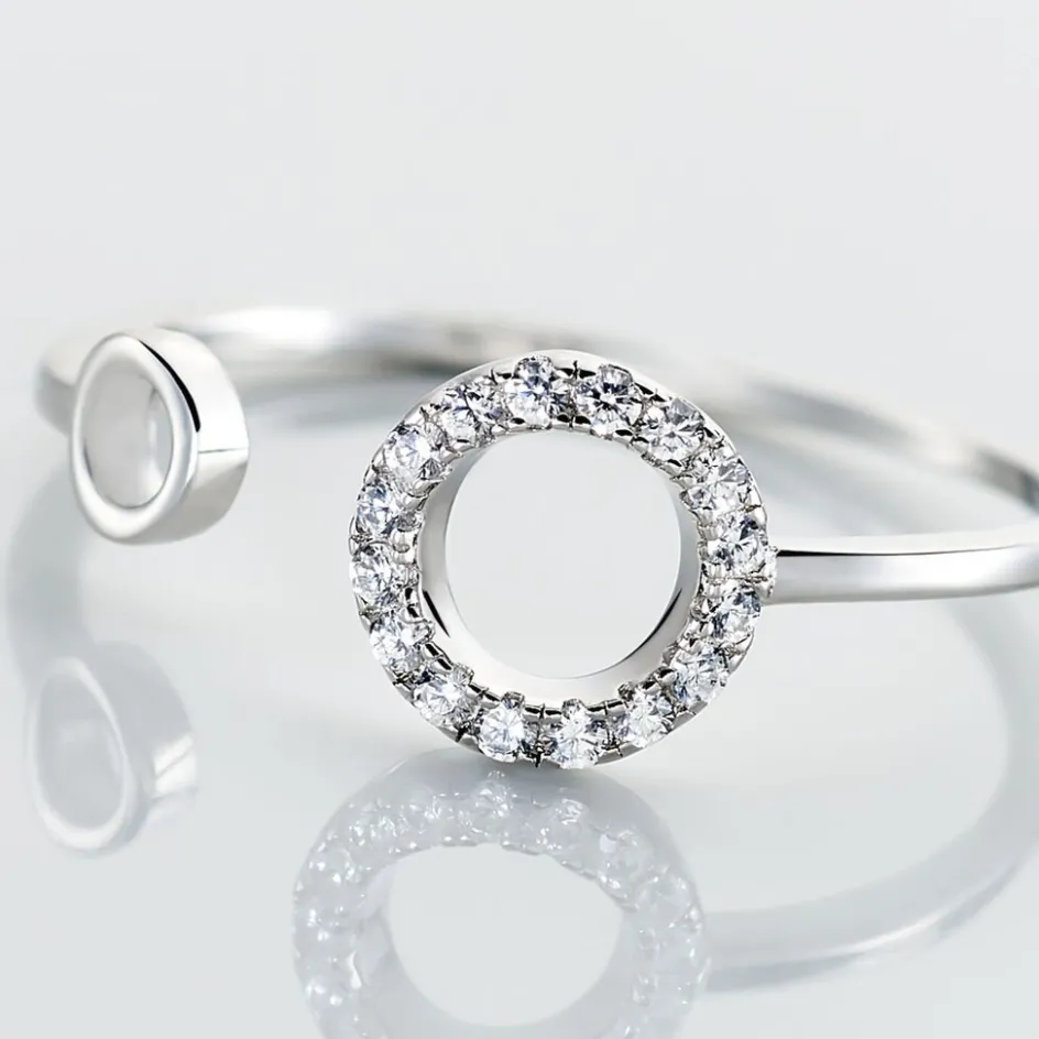 Bague Argent Blanc 925/1000 Ouverte Cercles Oxydes De Zirconium