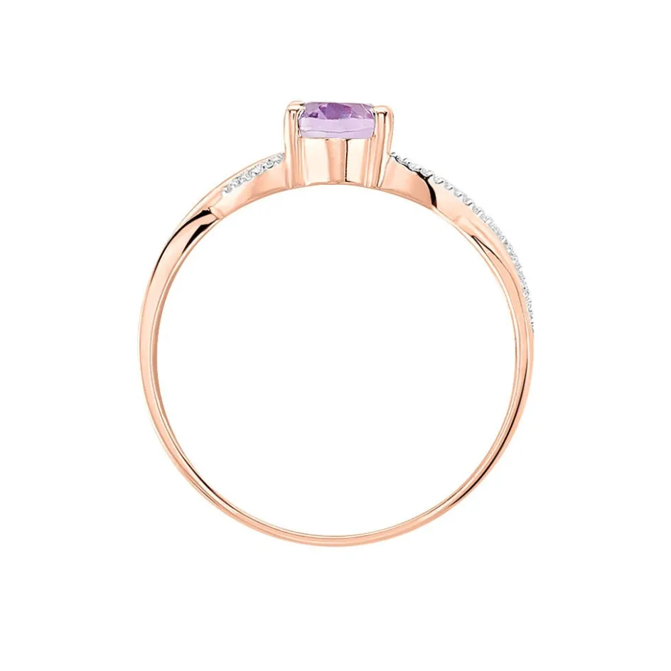 Bague Or Rose 375/1000 Croisee Amethyste Ovale Serti Griffes
