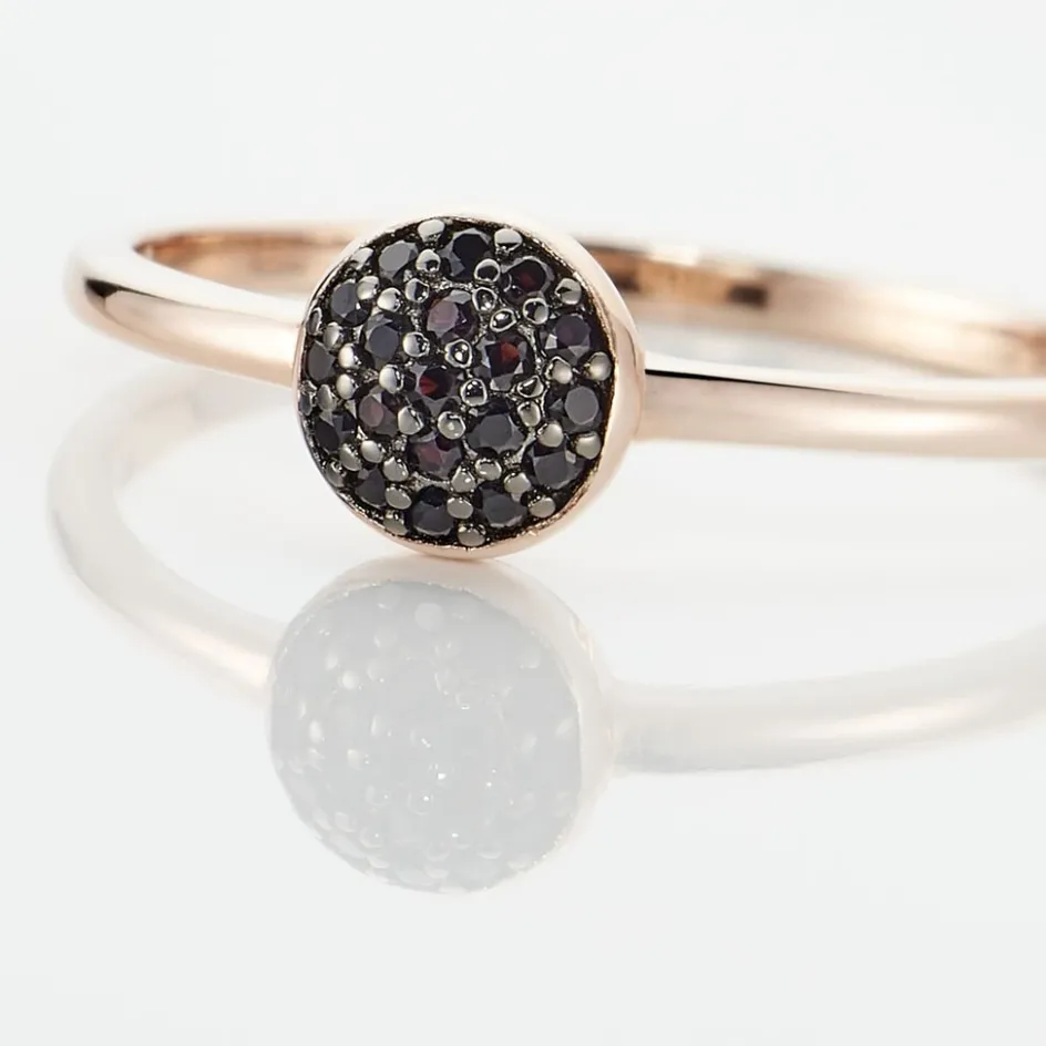 Bague Argent Rose 925/1000 Forme Ronde Oxydes De Zirconium Noirs Centraux