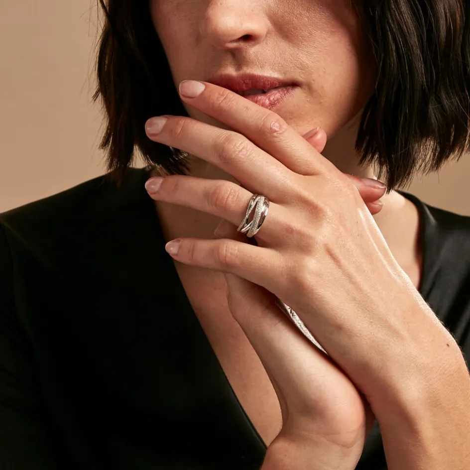 Bague Or Blanc 375/1000 Brides Croisees Et Pavages Diamants