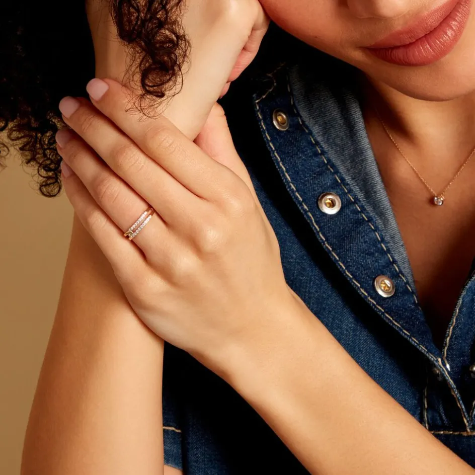 Bague Or Jaune 375/1000 Maillons Oxydes De Zirconium Micro Serti