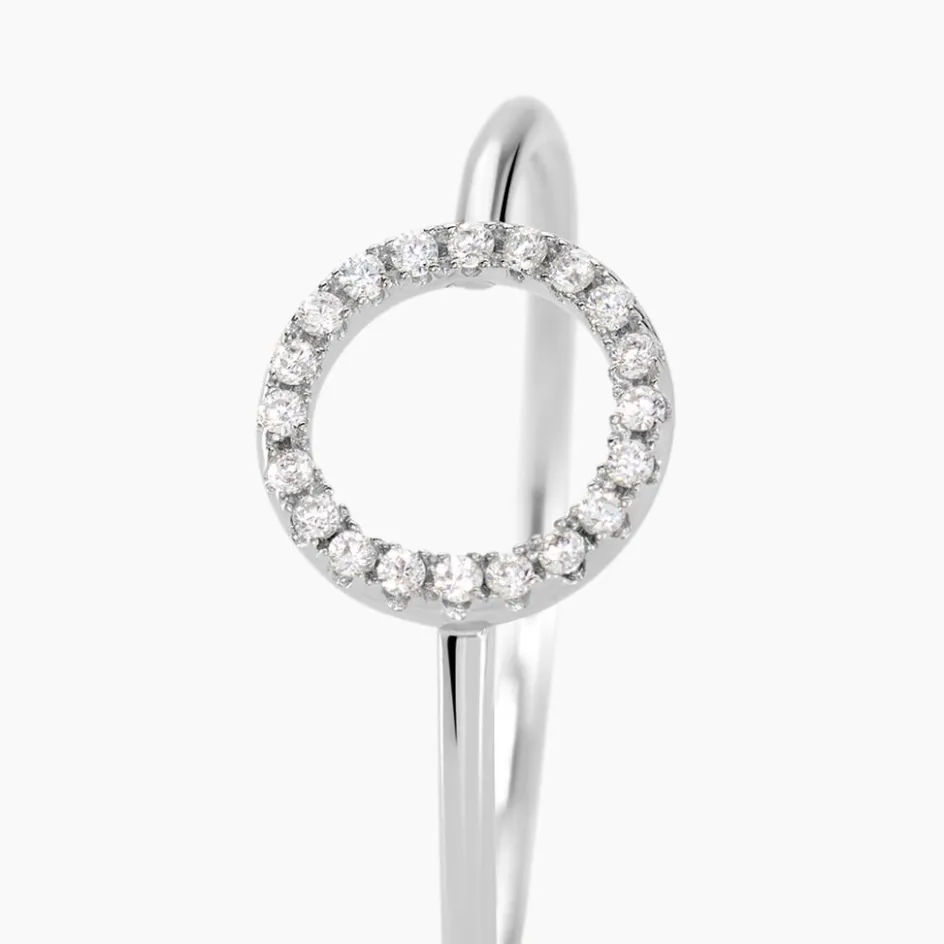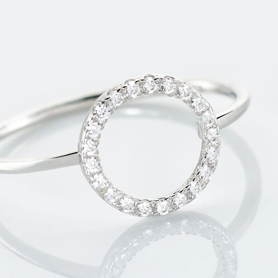 Bague Argent Blanc 925/1000 Forme Cercle Ajoure Pavage Oxydes De Zirconium