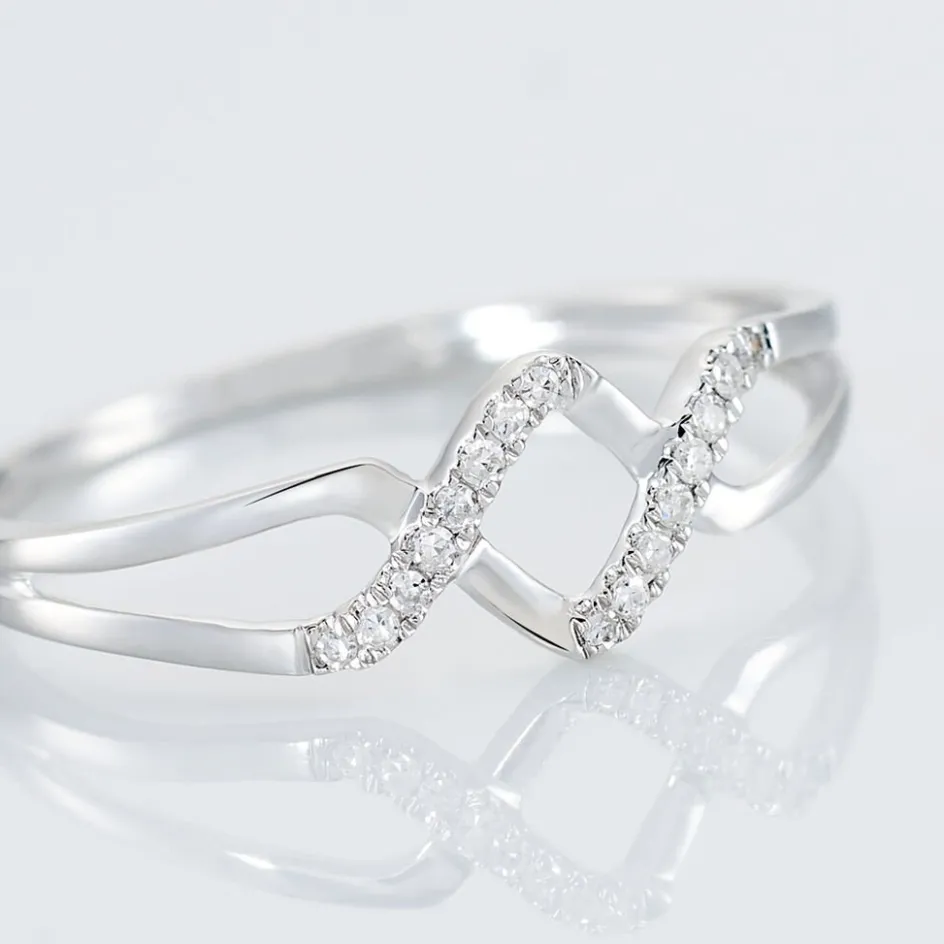 Bague Or Blanc 375/1000 Vagues Entrelacées Semi Pavées Diamants