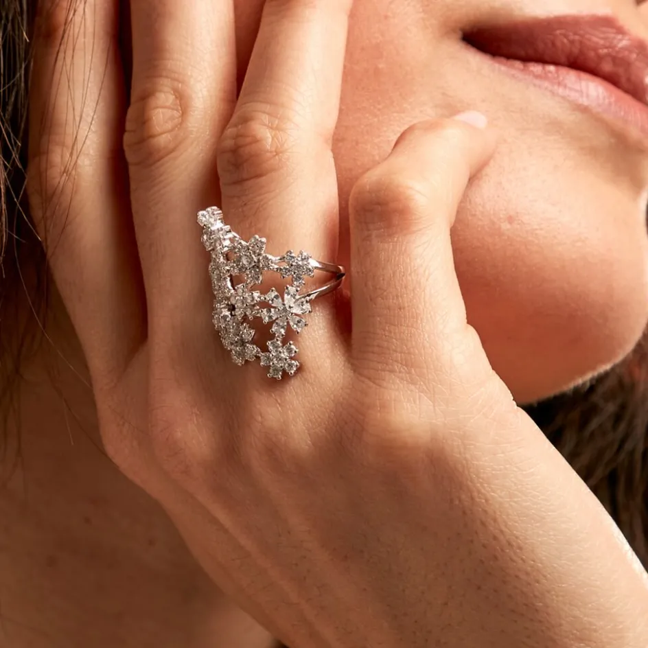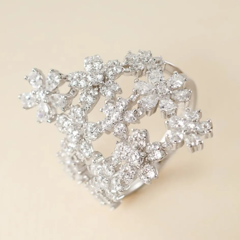 Online Histoire d’Or Bague Midnight Flower Argent Blanc Oxyde De Zirconium