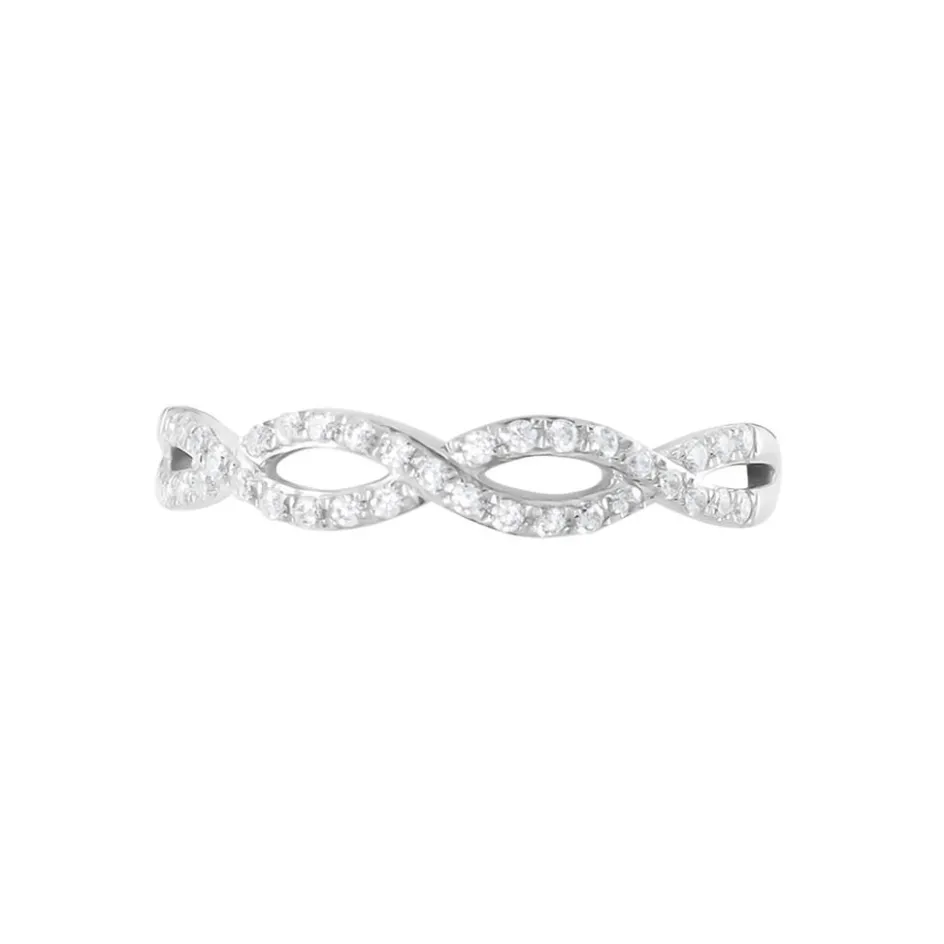 Bague Or Blanc 375/1000 Vague Oxyde De Zirconium Serti Pavage 0.32cts