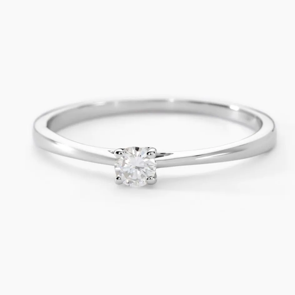 Bague Solitaire Or Blanc 375/1000 Diamant 0.10cts Serti 4 Griffes