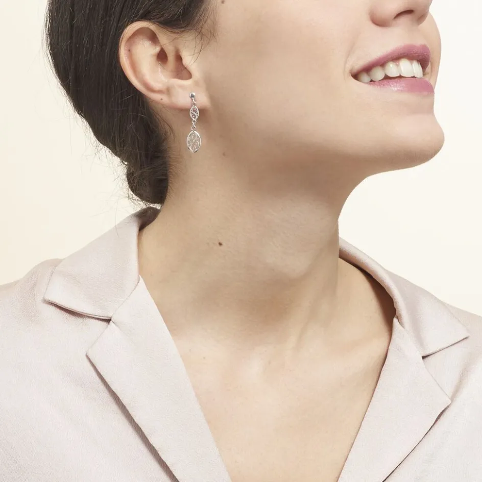 Boucles D’oreilles Pendantes Argent Blanc 925/1000 Filigranes Multiples