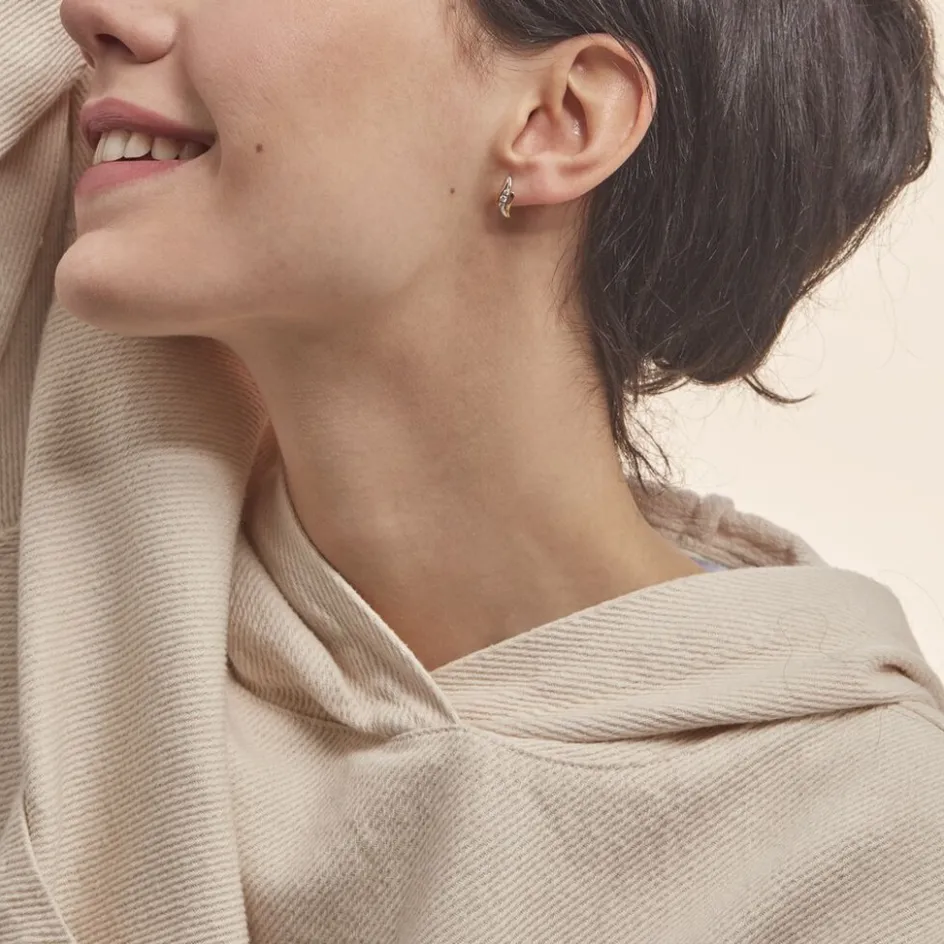 Boucles D’oreilles Or Bicolore 375/1000 Trilogie Vague Diamants 0.122cts