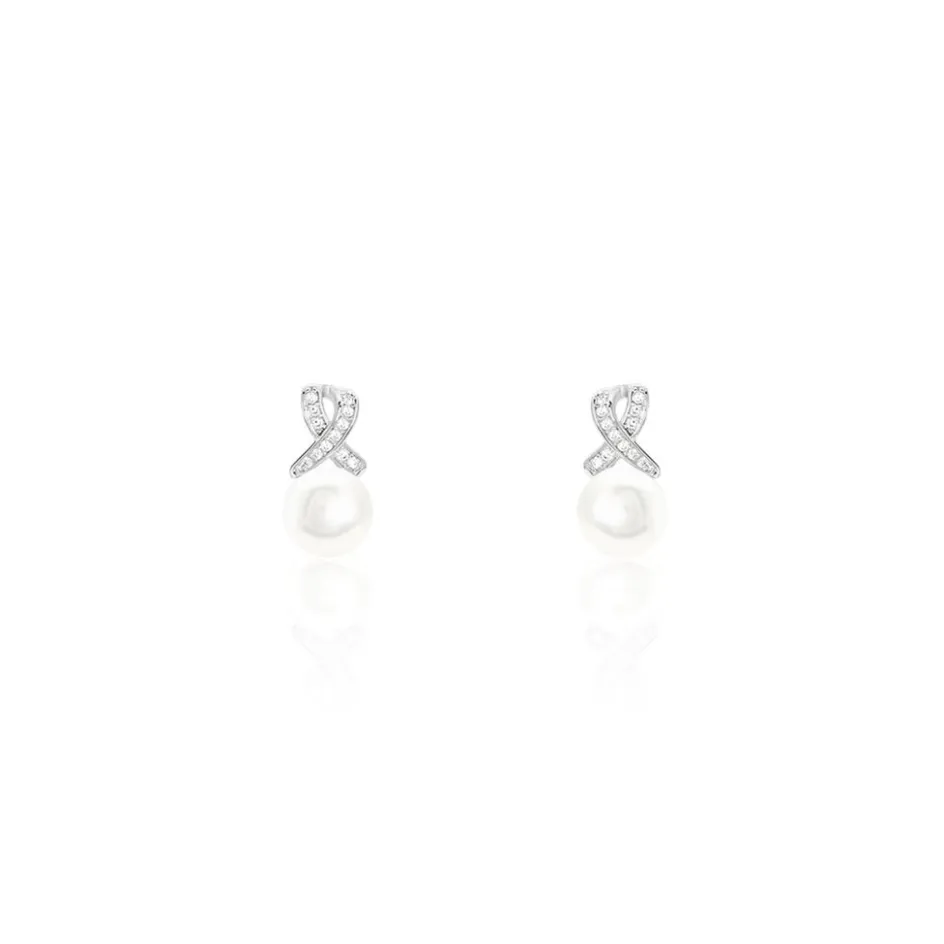 Boucles D’oreilles Argent Blanc 925/1000 Perles De Culture 7-7.5mm Et Oxydes De Zirconium
