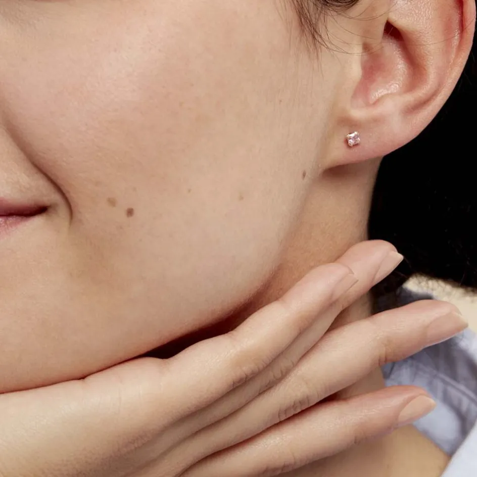 Boucles D’oreilles Or Jaune 375/1000 Puce Oxydes De Zirconium Roses Carrées 3mm