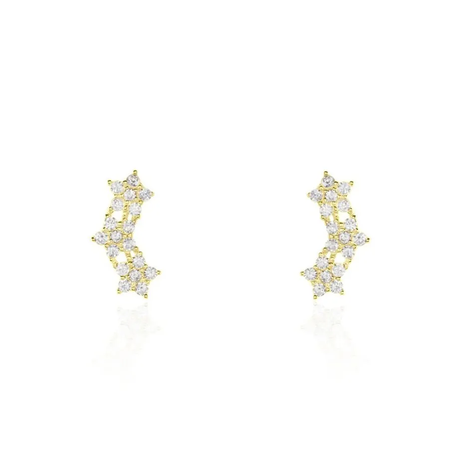 Boucles D’oreilles Puces Or Jaune 375/1000 Barrettes Etoiles Oxydes De Zirconium