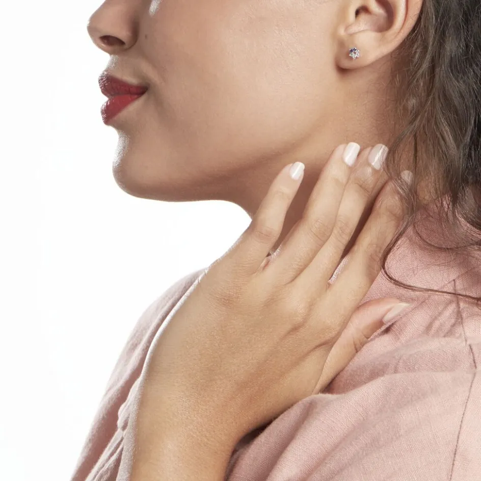 Boucles D’oreilles Puces Argent Blanc 925/1000 Fleurs Camaieu Bleu Serti Griffes Oxydes De Zirconium