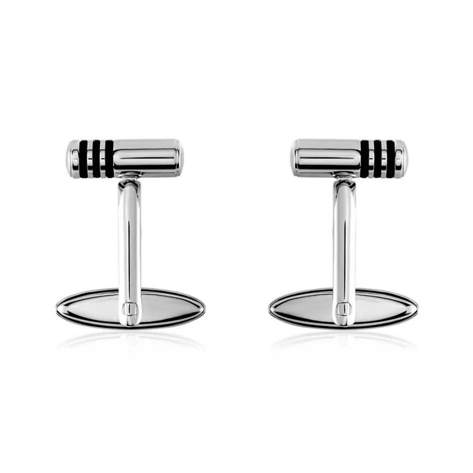 Boutons De Manchette Acier Inoxydable Bicolore Cylindre Trois Barres Noires 15mm