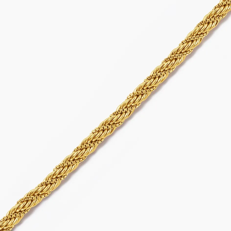 Bracelet Acier Inoxydable Jaune Maille Corde Effet Torsadé Largeur 5mm Longueur 16+3cm