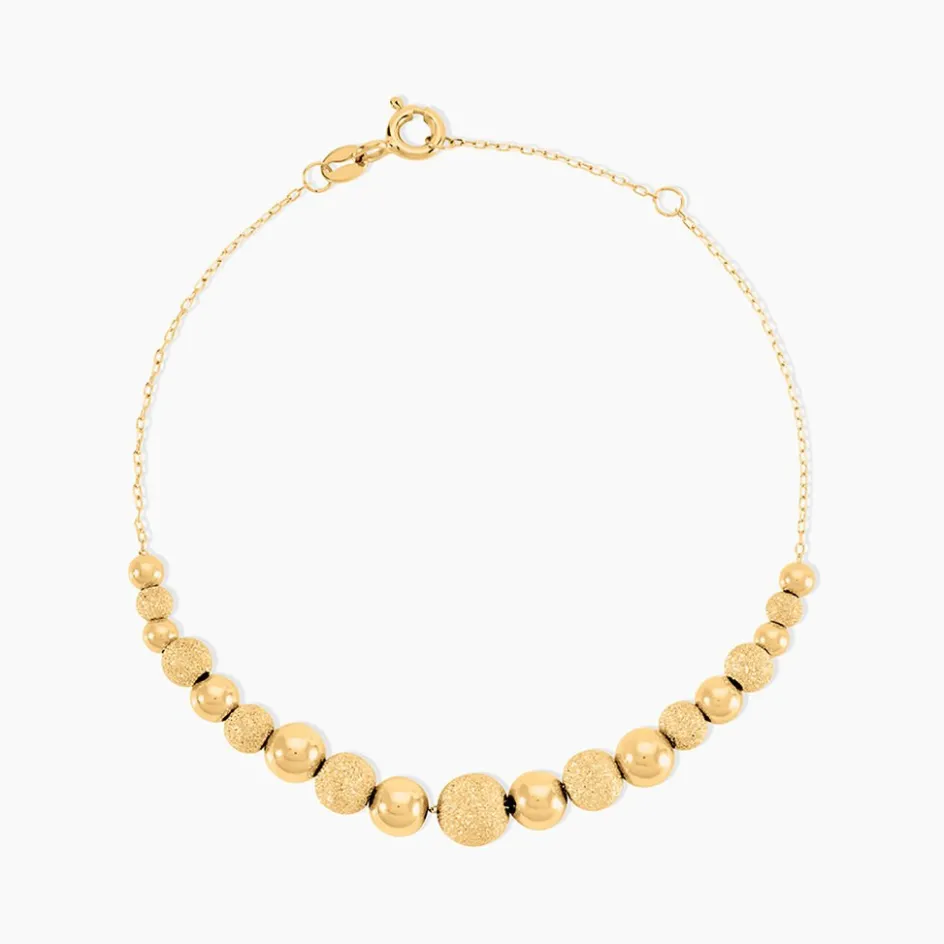Bracelet Or Jaune 750/1000 Chute Boules Lisses Et Sablees Maille Forcat 17+2Cm