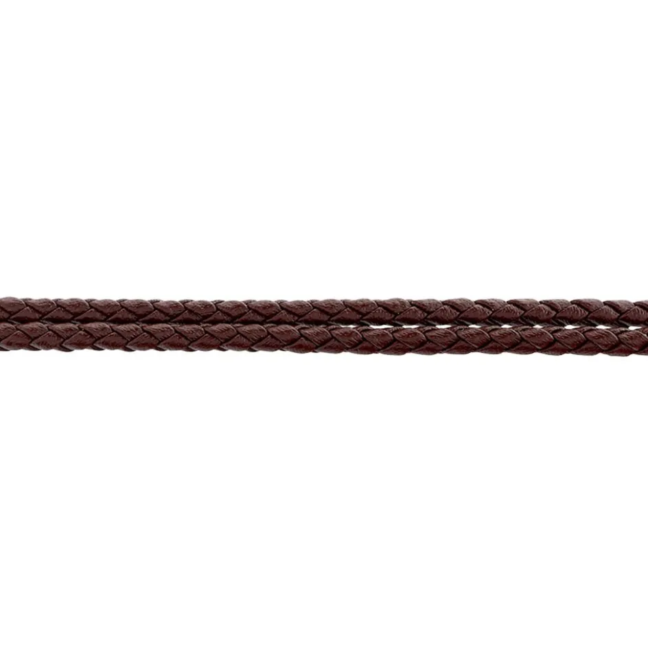Bracelet Acier Inoxydable Blanc Cuir Marron Double Tours 42cm