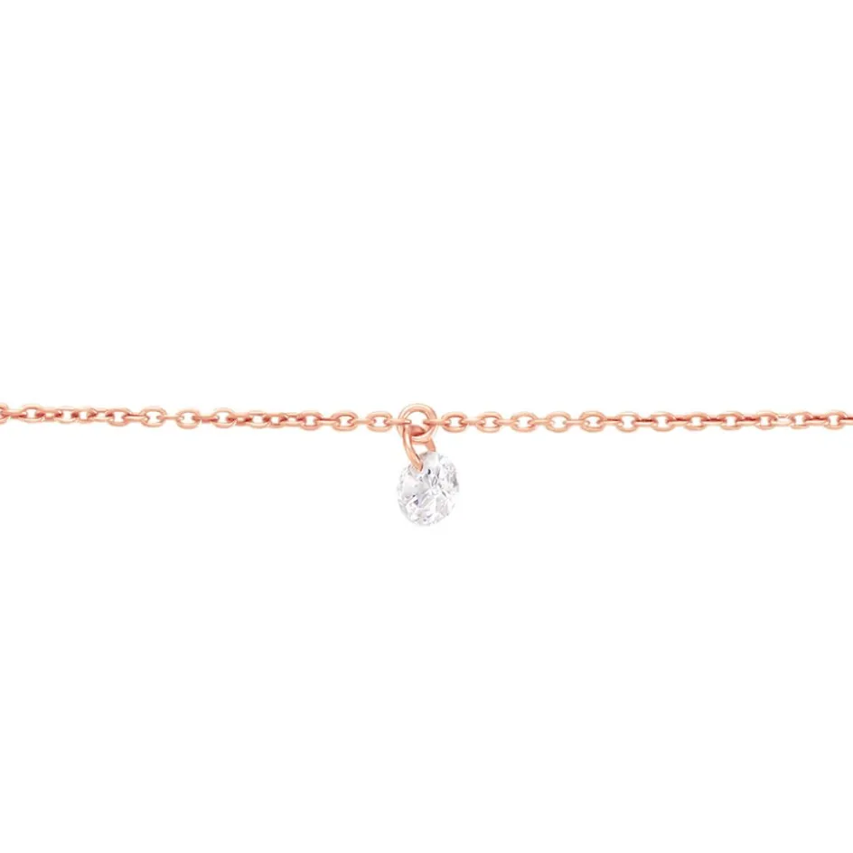 Bracelet Argent Rose 925/1000 Pampille 1 Oxyde De Zirconium Perçée Maille Forçat 19cm