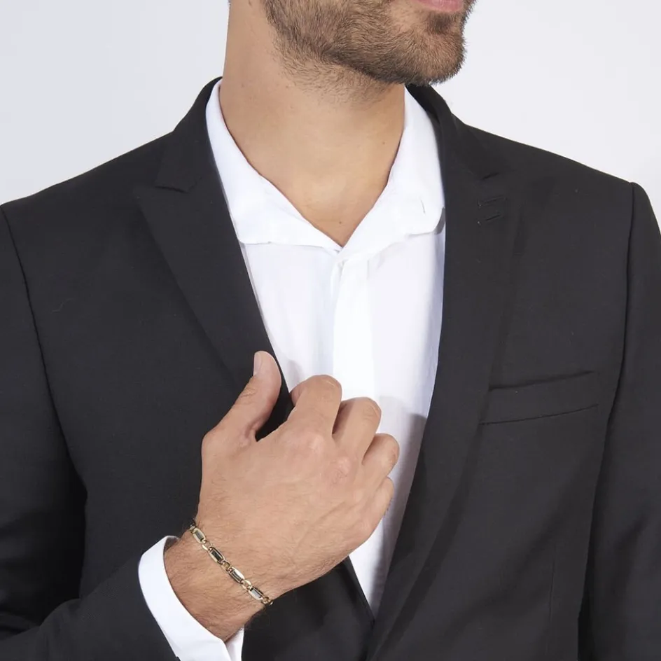 Bracelet Or Bicolore 375/1000 Maille Plaquette 5.6mm 19cm