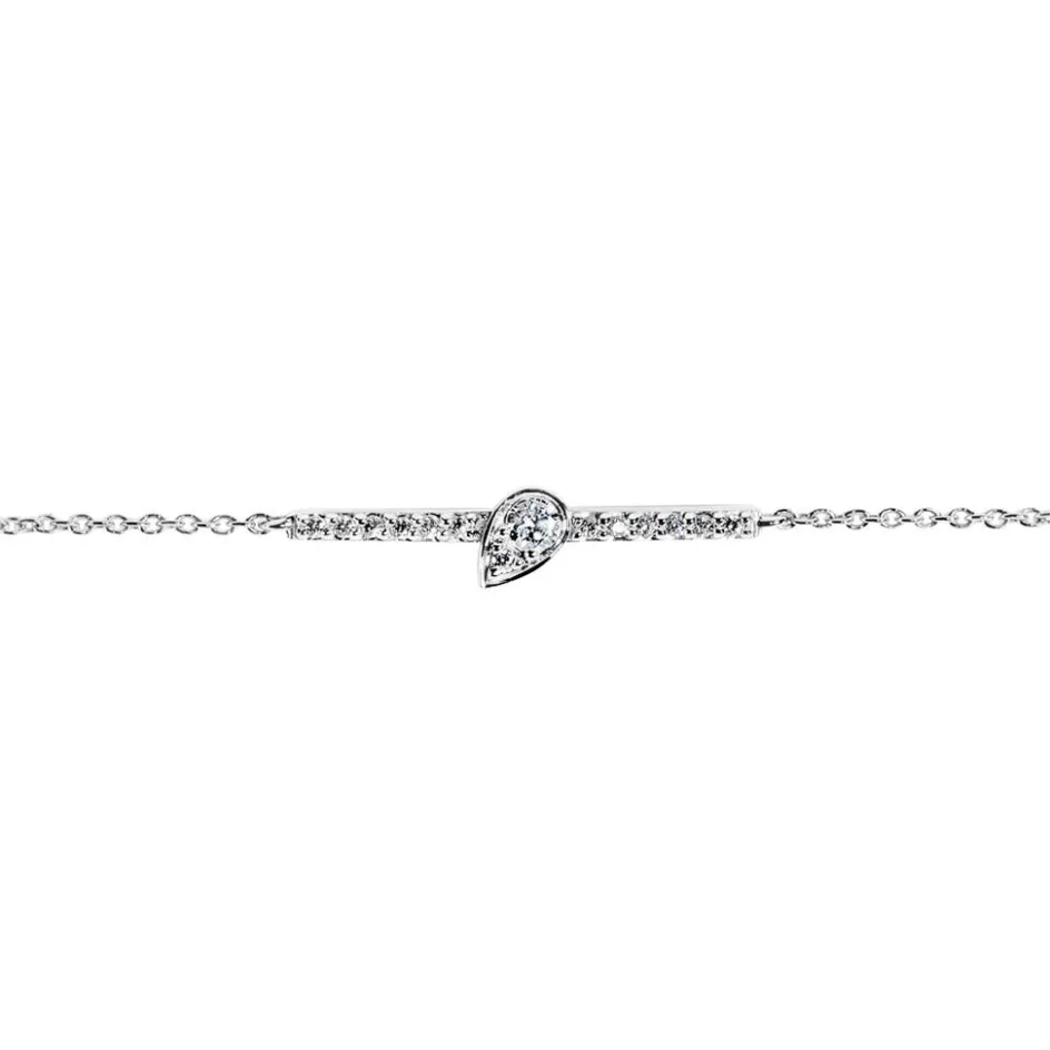 Bracelet Or Blanc 375/1000 Multipierres Forme Goutte Barette Diamants Blancs 0.1cts 18cm