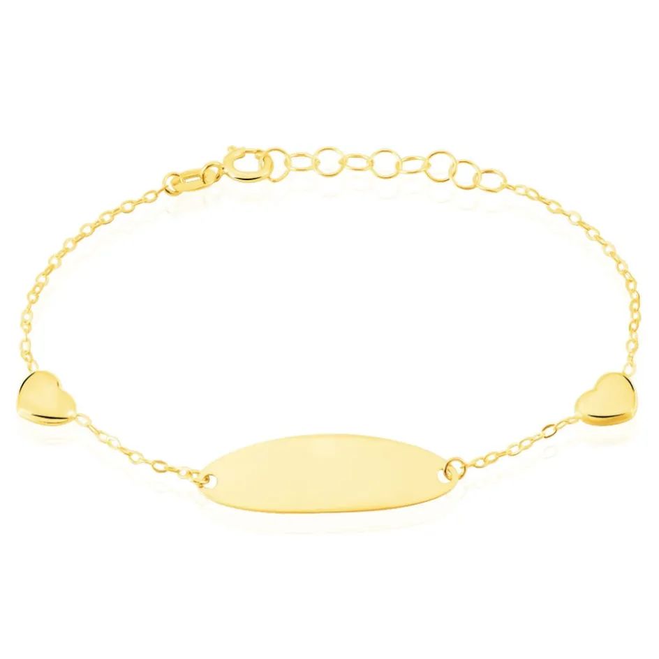 Bracelet Identité Bebe Or Jaune 375/1000 2 C艙urs 14cm