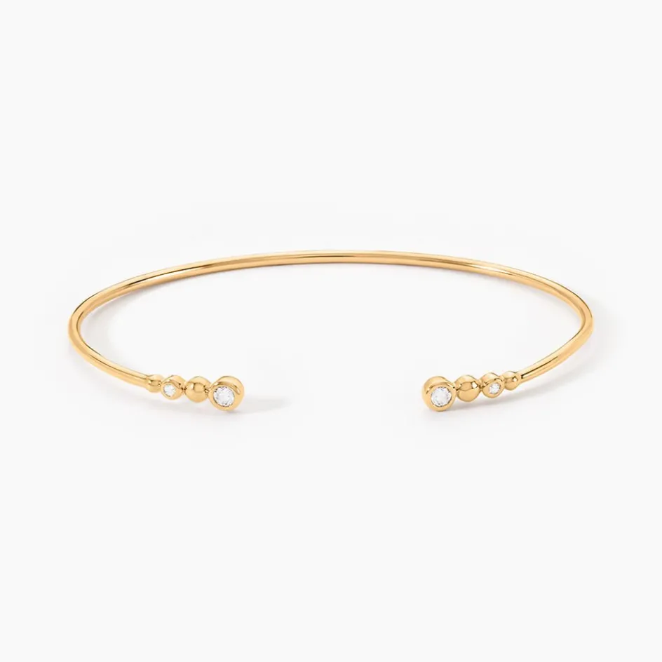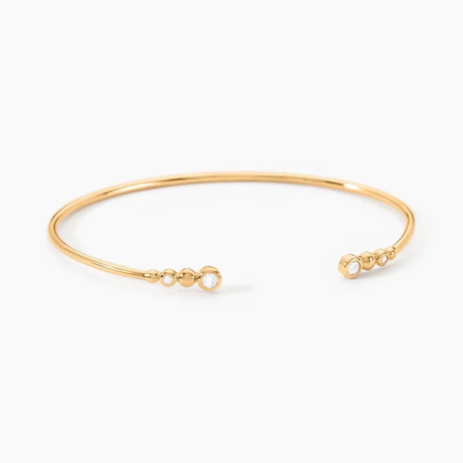 Bracelet Jonc Ouvert Plaqué Or Jaune Doules Et Oxydes De Zirconium Serti Clos Diamètre 58Mm