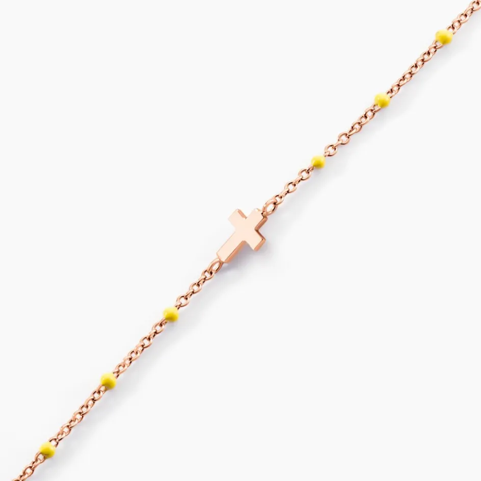 Bracelet Argent Rose 925/1000 Croix Boules émail Maille Jaseron 16+3cm