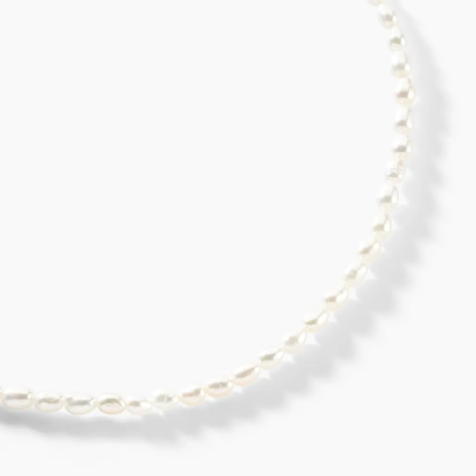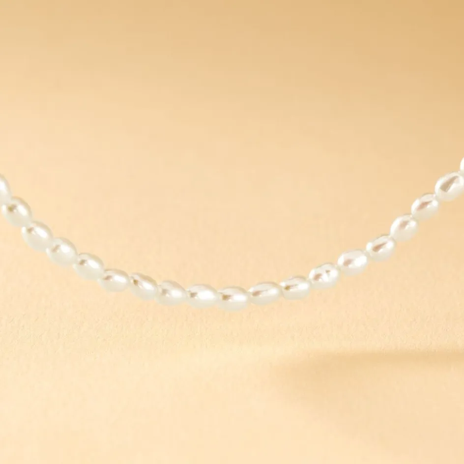 Collier Or Jaune 375/1000 Perles De Culture Grain De Riz Nacre 3.5/4mm 42cm