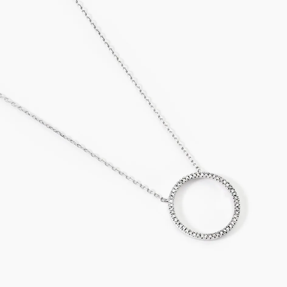 Collier Or Blanc 375/1000 Forme Cercle Pavage Diamants 42cm