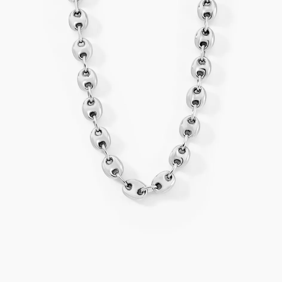 Collier Argent Blanc 925/1000 Maille Grain De Cafe Epaisseur 8mm 55cm
