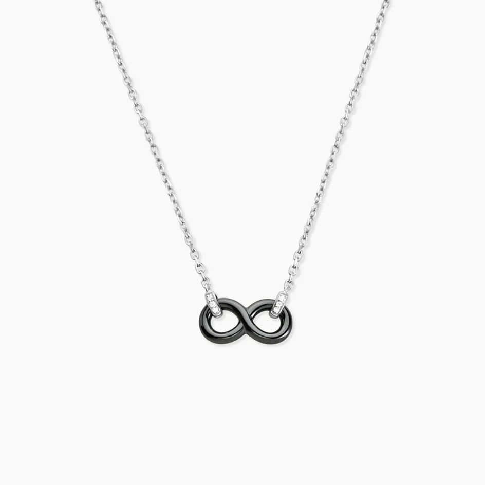 Collier Argent Blanc 925/1000 Motif Infini Ceramique Noire Et Oxydes De Zirconium 45cm