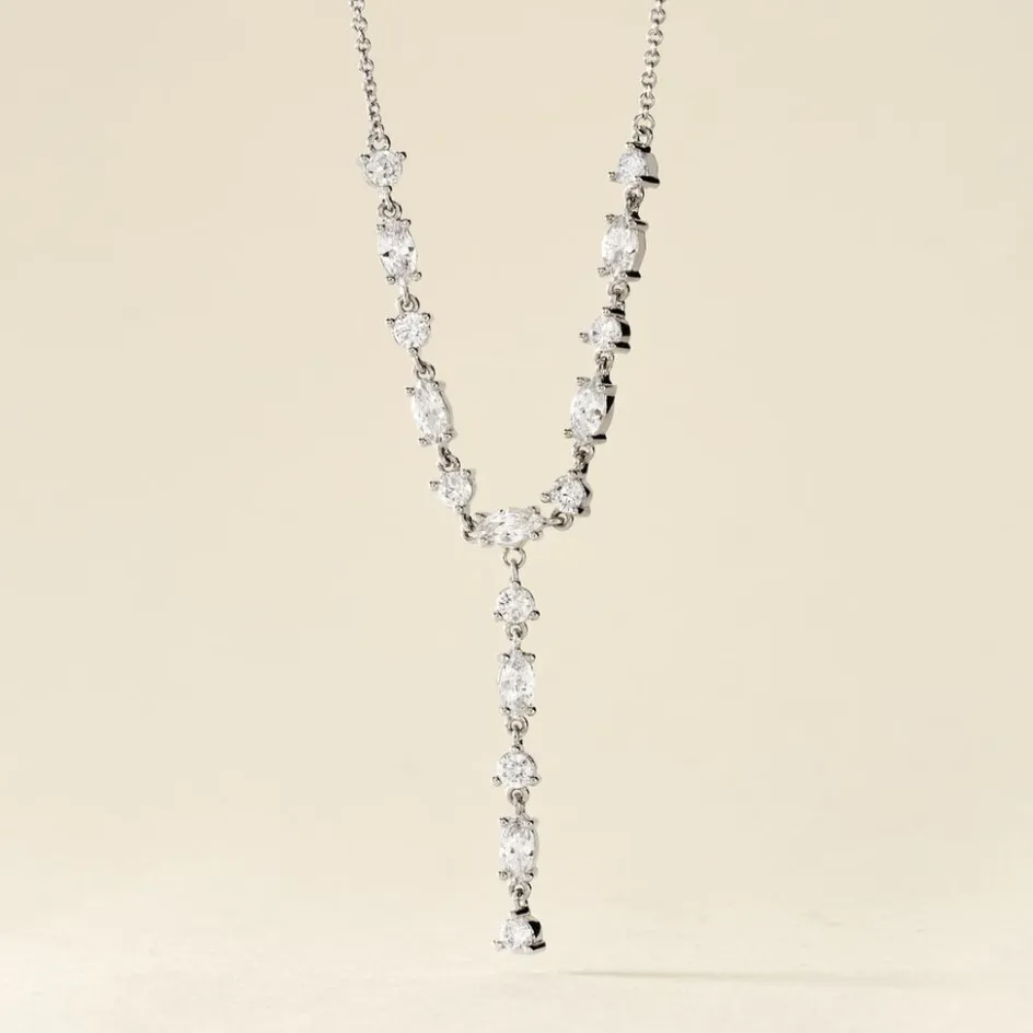 Collier Cravate Argent Blanc 925/1000 Multipierres Navettes Oxydes De Zirconium Maille Forçat 42+3cm
