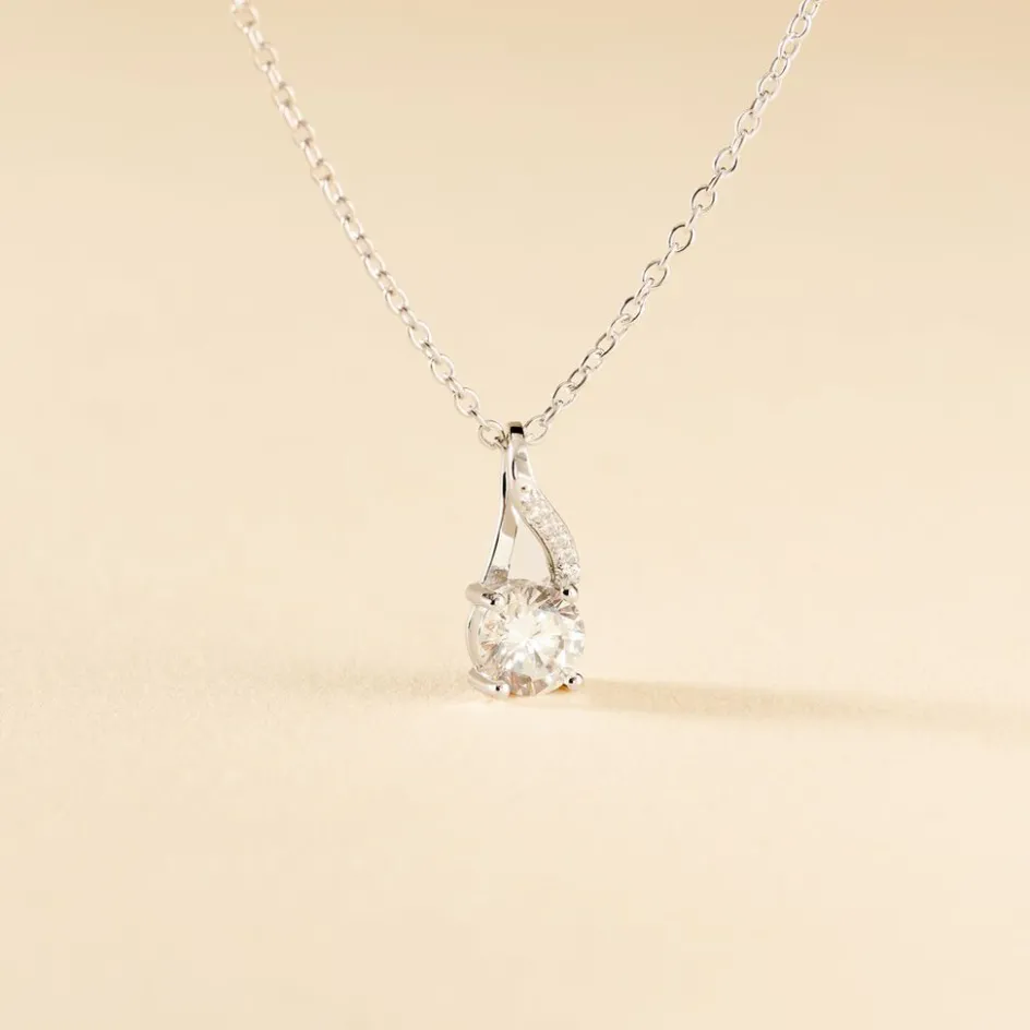 Collier Argent 925/1000 idylla Oxydes De Zirconium Serti Griffes Maille Forcat 42cm