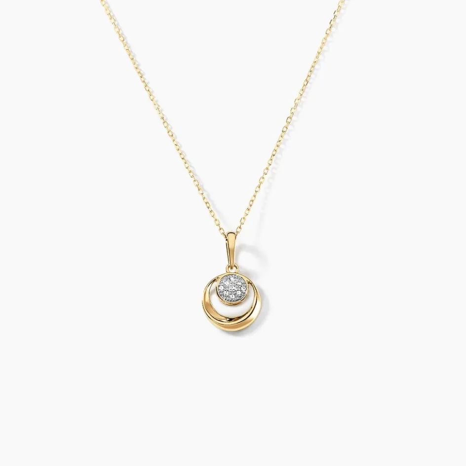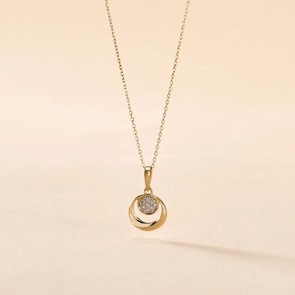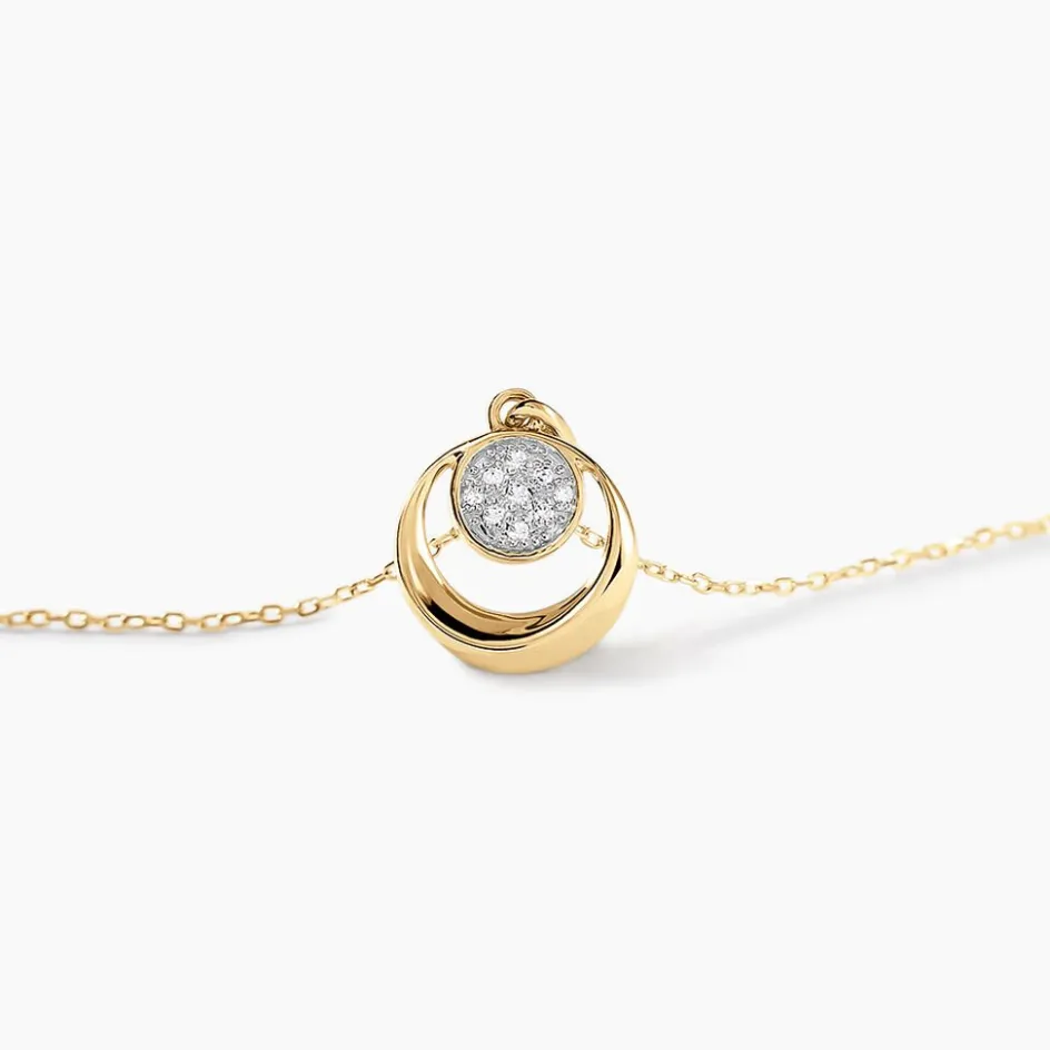 Collier Or Jaune 375/1000 Forme Cercle Ajoure + Semi Pavage Diamants 42cm