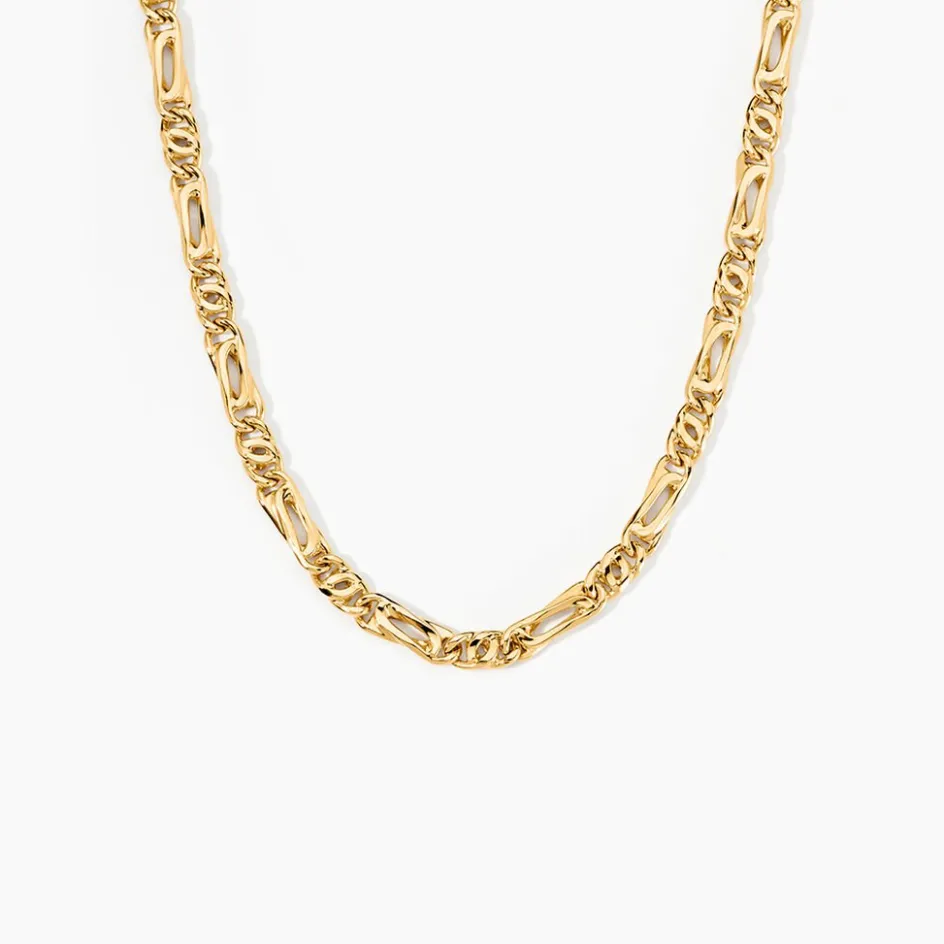 Collier Maille Or Jaune 750/1000 Maille Alternee 1/3 Fantaisie Largeur 4.5mm 50cm