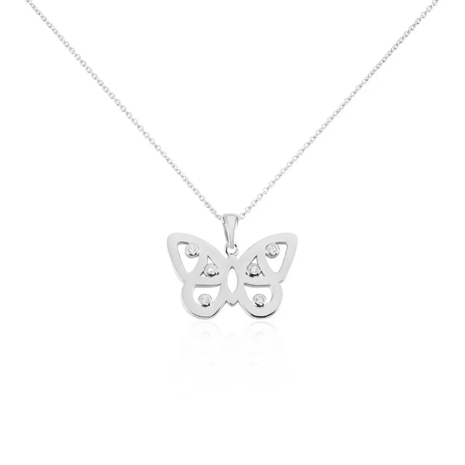 Collier Argent 925/1000 Papillon Maille Forçat Sertis Clos Oxydes De Zirconium 50cm