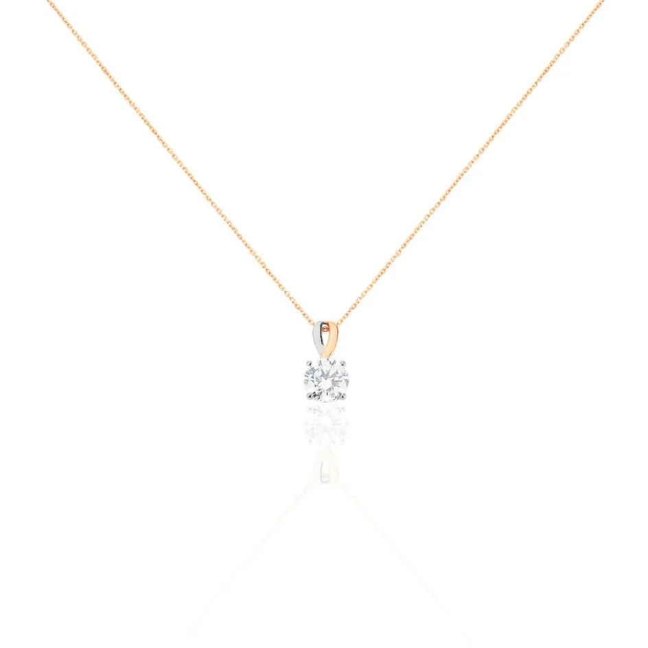 Collier Or Bicolore Blanc Et Rose 375/1000 Oxyde De Zirconium Central 6.5mm 42cm