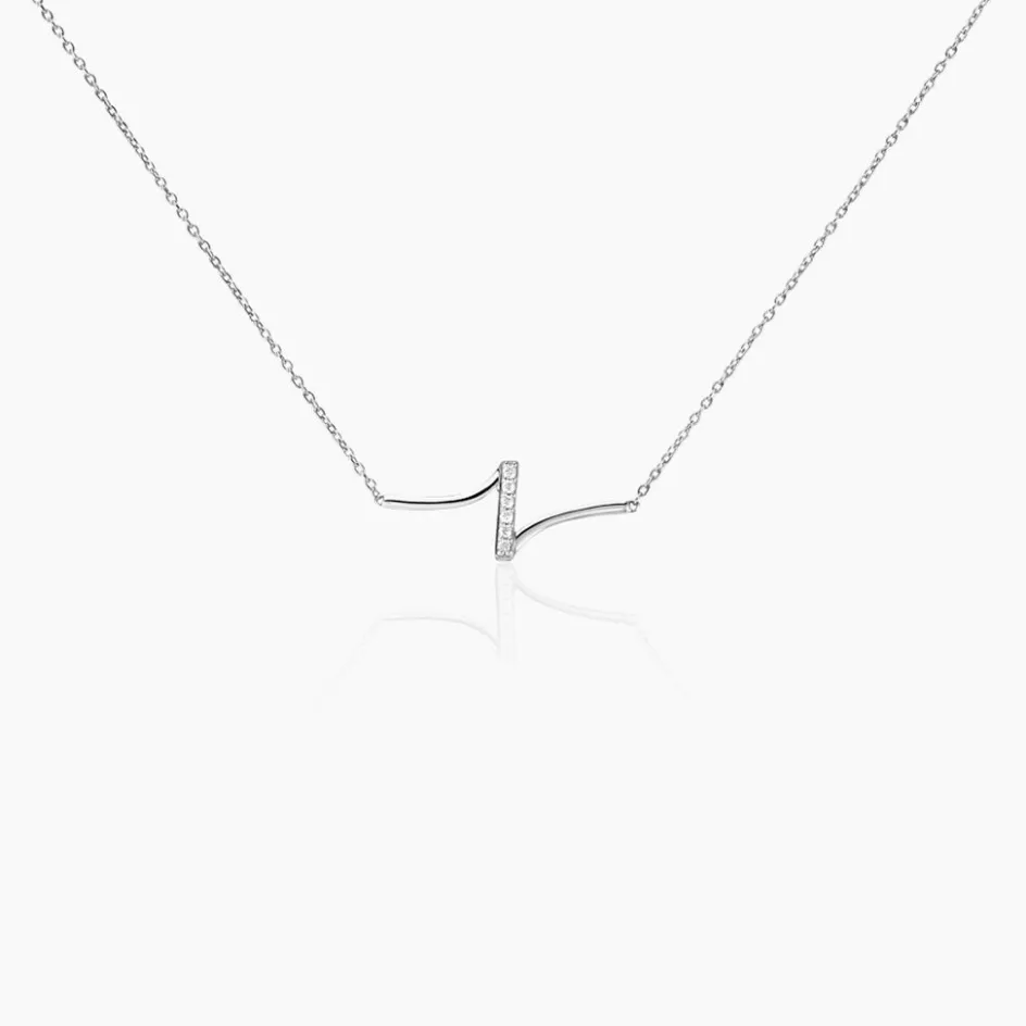 Collier Argent Blanc 925/1000 Vague Oxydes De Zirconium Maille Forcat 42+3cm