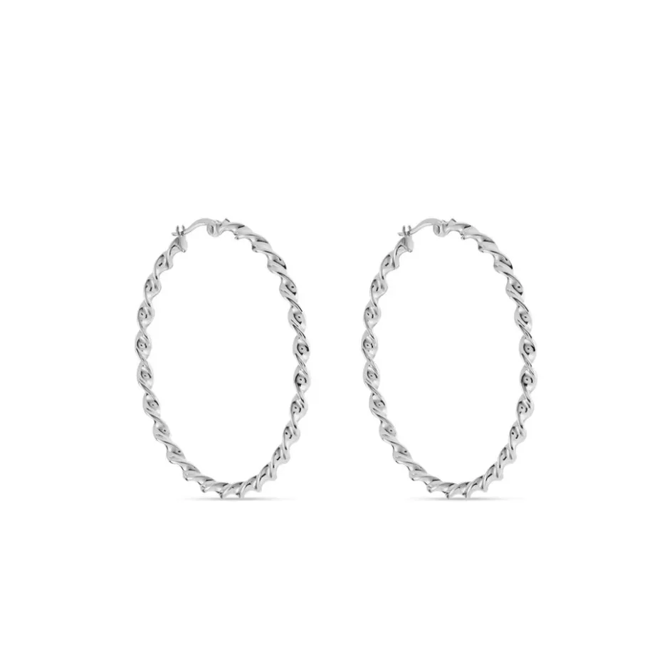 Créoles Acier Inoxydable Blanc Torsadees Largeur 3mm Diametre 40mm